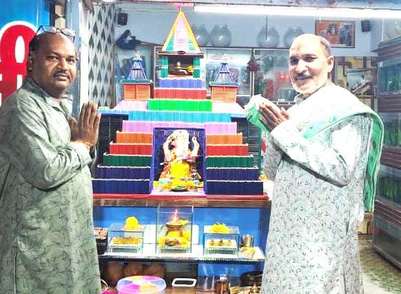 27 अगस्त दोपहर 2 बजे गणेश जी की स्थापना पंडित हरनारायण पाण्डेय के सानिध्य में की गई। इस अवसर पर मुख्य यजमान अक्षत तंबोली रहे और श्री सिद्ध हनुमान मंदिर परिवार भी मौजूद रहा। पूजा-अर्चना और आरती के बाद प्रसाद वितरण किया गया। संध्या आरती प्रतिदिन अलग-अलग पंडितों के सानिध्य में कराई जा रही है। प्रथम दिवस की आरती पंडित भोलाशंकर तिवारी के मार्गदर्शन में संपन्न हुई, जिसमें तंबोली परिवार और श्रद्धालुओं ने मिलकर सहभागिता की। अमित तंबोली का कहते हैं “मेरे लिए यह केवल कला नहीं, बल्कि श्रद्धा का विषय है। हर साल मैं कुछ नया करने का प्रयास करता हूँ ताकि गणेश जी की स्थापना के साथ-साथ लोग भी कला से प्रेरित हों। इस बार मैंने कलर पेंसिल को चुना क्योंकि बच्चे रंगों से सबसे ज्यादा जुड़े होते हैं। यही वजह है कि प्रतिदिन बच्चों को पेंसिल दी जा रही है, ताकि उनमें भी रचनात्मकता का बीज अंकुरित हो।”