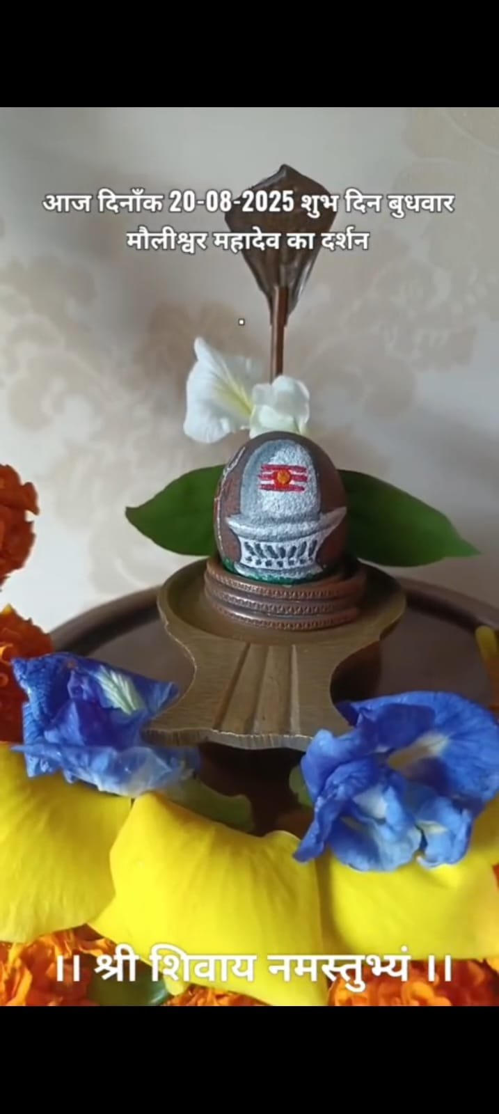 सक्ती, 20 अगस्त। सावन-भाद्रपद के पावन माह में श्रद्धालु प्रतिदिन मौलीश्वर महादेव पर जलाभिषेक और विशेष श्रृंगार कर रहे हैं। इसी क्रम में आज बुधवार को श्रद्धालु अमित तंबोली ने मौलीश्वर महादेव का अद्वितीय श्रृंगार किया। अमित तंबोली प्रतिदिन शिवलिंग पर जल, धूप, दीप के साथ विभिन्न देवी-देवताओं के चित्रमय श्रृंगार करते हैं। बुधवार को उन्होंने संगेमरमर के शिवलिंग पर त्रिपुंड तिलक और त्रिशूल सहित आकर्षक सज्जा की, जो भक्तों के बीच चर्चा का विषय बनी। अमित तंबोली ने सभी भक्तजनों से आग्रह किया है कि इस श्रृंगार के वीडियो और फोटो को अपने परिचितों तक पहुँचाएं और अपने सोशल मीडिया स्टेटस पर स्थान दें। उन्होंने कहा कि ऐसे प्रयास धार्मिक आस्था को और प्रगाढ़ बनाते हैं तथा समाज में सकारात्मक ऊर्जा का संचार करते हैं।