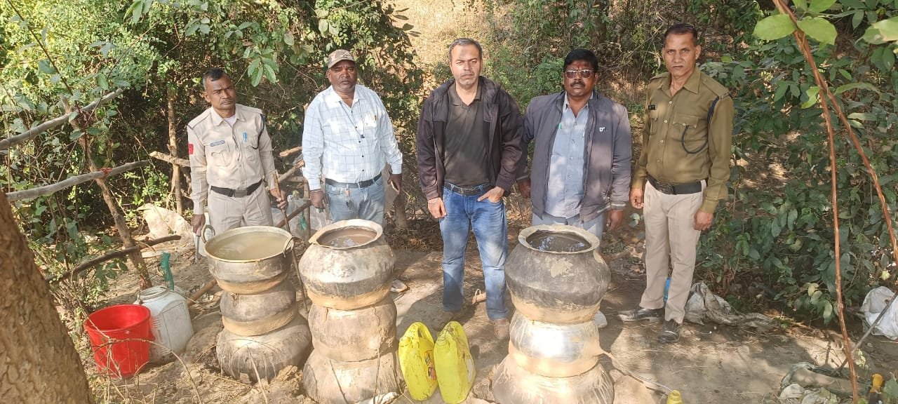 नए साल से पहले आबकारी विभाग की साल की सबसे बड़ी कार्रवाई, ग्राम जुड़गा में अवैध महुआ शराब फैक्ट्री ध्वस्त, 115 लीटर शराब व 500 किलो लाहन जब्त