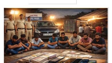 सक्ती: हाईवे 49 स्थित अतिथि ढाबा के पास जुआ खेलते 8 जुआरी गिरफ्तार, नगदी, मोबाइल और कार सहित 5.16 लाख की सामग्री जब्त
