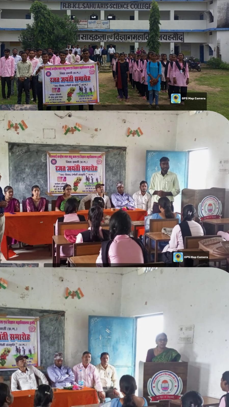 हसौद= रामबाई कन्हैयालाल साहू कला एवं विज्ञान महाविद्यालय हसौद में रजत जयंती बड़ी धूमधाम से मनाया गया जिसमें छत्तीसगढ़ के गठन, विरासत, संस्कृति धरोहर, को सुक्षमता से बताई गई छात्र-छात्राएं रंगोली, वादविवाद भाषण ,गीत आदि में बढ़ चढ़कर भाग लिया। कार्यक्रम में उपस्थित महाविद्यालय के प्राचार्य महोदय डॉक्टर श्रीमती अलका साहू सहायक प्राध्यापकगण श्री आदर्श यादव, श्री लखन रोहिदास ,श्री जितेन बघेल,श्री अजय जायसवाल, श्री रिखीराम यादव, श्री अमित साहू,श्री संतोष भारद्वाज, सुश्री करुणा टांडेल, श्रीमती ललिता जायसवाल, श्रीमती स्नेहलता कुर्रे , श्री दिनेश नवरंग, श्री दिनेश साहू, श्री रिपेन्द्र साहू, श्री सुनील साहू ,श्री निरंजन नागेश, श्री मुकेश परमार सहा प्राध्यापकगण के साथ पुष्पेंद्र,राजेश खूंटे, देवेंद्र पटेल, दिव्या कश्यप, लता कश्यप, तनुजा परमार सहित भारी संख्या में छात्र उपस्थित रहे