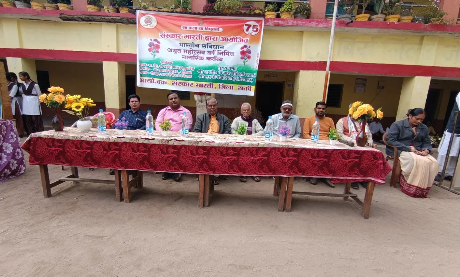 बिर्रा — जनपद पंचायत बम्हनीडीह अंतर्गत ग्राम पंचायत बिर्रा के सरस्वती शिशु मंदिर उच्चतर माध्यमिक विद्यालय प्रांगण में संस्कार भारती छत्तीसगढ़ के निर्देशानुसार भारतीय संविधान के 75 वर्ष पूर्ण होने के उपलक्ष्य में अमृत महोत्सव वर्ष के अंतर्गत विविध कार्यक्रमों का आयोजन किया जा रहा है। इसी कड़ी में संस्कार भारती सक्ती जिला इकाई द्वारा 10 जनवरी, शनिवार को नागरिक कर्तव्य सम्मेलन का आयोजन किया गया।