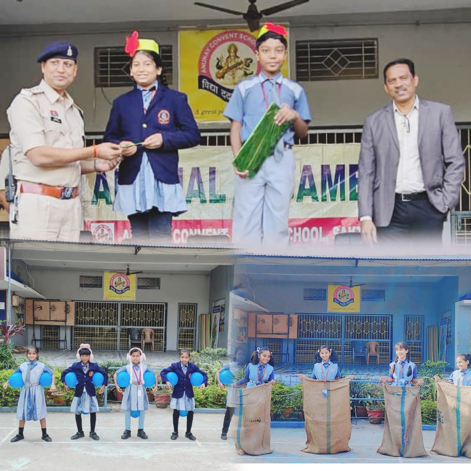 कलरिंग गेम, हॉर्स रेस, माइंड डेवलपमेंट गेम, इंग्लिश राइम्स, बिस्किट रेस, जलेबी रेस, बैलून रेस, फ्रॉग रेस, चेयर रेस, बैलेंस द कप, हिंदी–इंग्लिश राइटिंग कम्पटीशन, थ्रो एंड हिट गेम, 100 मीटर रेस, स्पून रेस तथा जी.के. प्रतियोगिता जैसे विभिन्न गेम आयोजित किए गए।