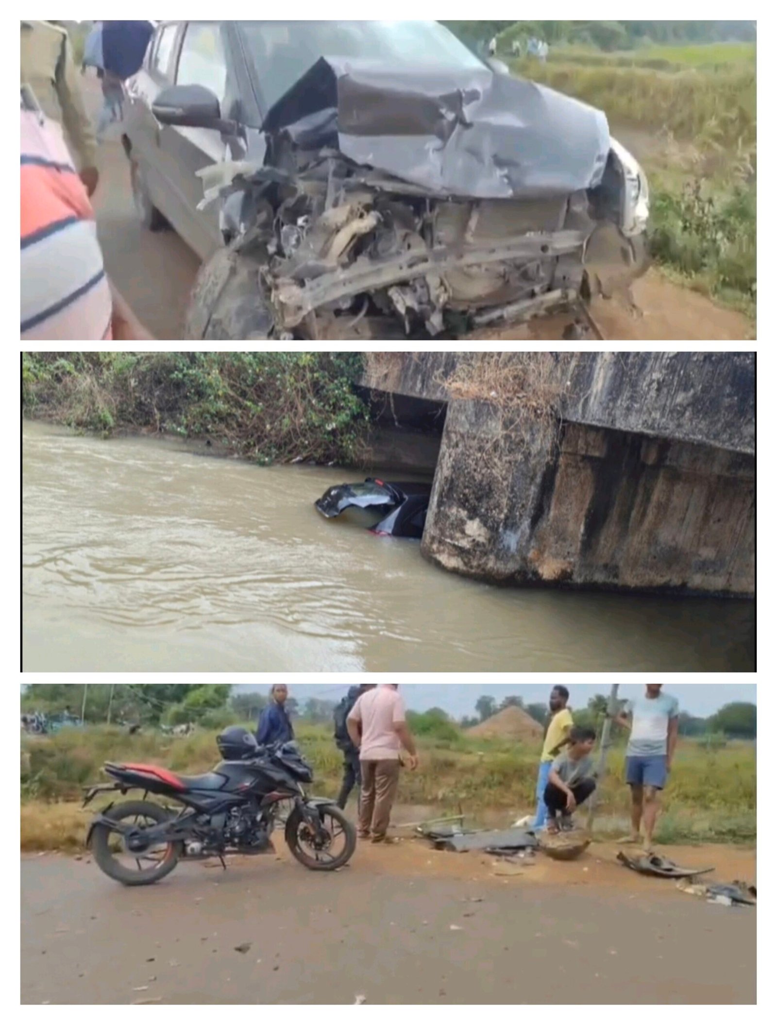 मालखरौदा (सक्ती)। 31 अक्टूबर 2025 – मालखरौदा ब्लॉक अंतर्गत पोता–चरौदी नहर पुल के पास आज सुबह करीब 10:30 बजे एक भीषण सड़क हादसा हुआ। प्रत्यक्षदर्शियों के अनुसार, ओडेकरा निवासी पी. के. चंद्रा अपनी इंडिगो कार से खरसिया की ओर जा रहे थे, तभी सामने से तेज रफ्तार में आ रही स्विफ्ट कार से आमने-सामने टक्कर हो गई।