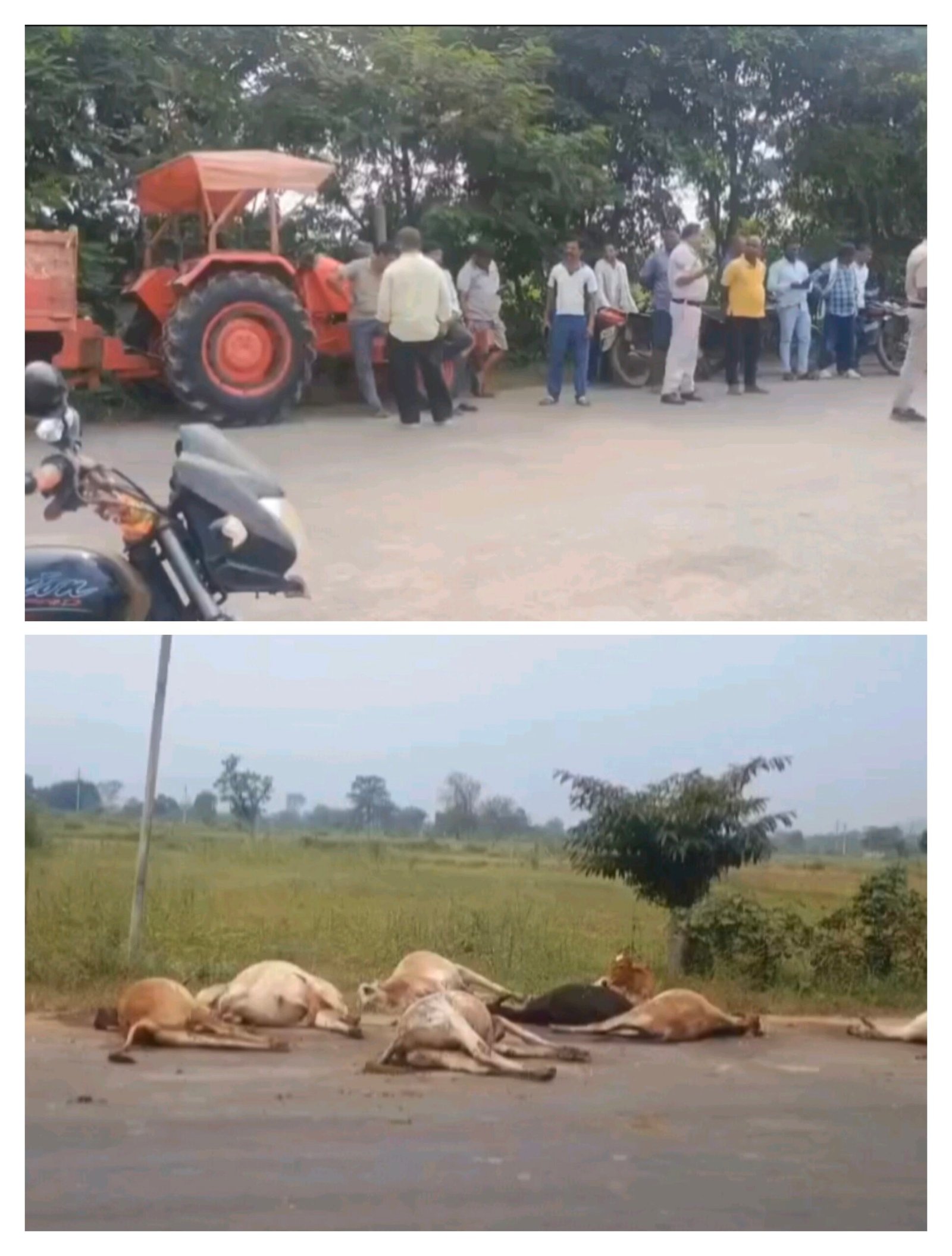गोबरा में भीषण सड़क हादसा — अज्ञात वाहन की टक्कर से 8 मवेशियों की मौत, 2 घायल, ग्रामीणों में आक्रोश, प्रशासन से की कड़ी कार्रवाई की मांग