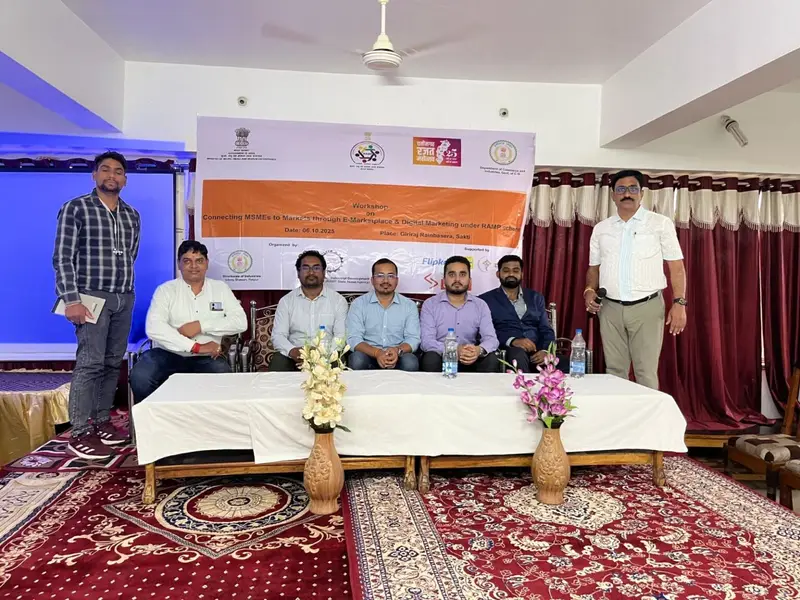 अरुण निराला संवाददाता-सक्ती – सूक्ष्म, लघु एवं मध्यम उद्यमों (एमएसएमई), महिला उद्यमियों, स्व-सहायता समूहों (एसएचजी) और पारंपरिक कागीगरों को डिजिटल माध्यम से बाजार से जोड़ने के उद्देश्य से उद्योग संचालनालय और सीएसआईडीसी रायपुर की पहल से कार्यालय महाप्रबंधक जिला व्यापार एवं उद्योग केन्द्र सक्ती द्वारा विगत दिवस होटल गिरीराज रैन बसेरा, सक्ती में ‘‘ई-मार्केटप्लेस एवं डिजिटल मार्केटिंग द्वारा एमएसएमई के लिए बाजार विकास’’ विषय पर एकदिवसीय कार्यशाला का आयोजन किया गया। यह कार्यक्रम छत्तीसगढ़ रजत महोत्सव 2025 के तहत् भारत सरकार की आरएएमपी योजना के अंतर्गत किया गया। कार्यशाला का शुभारंभ जिला व्यापार एवं उद्योग केन्द्र सक्ती के महाप्रबंधक शोभेन्द्र नायक के द्वारा कार्यशाला के संबंध में जानकारी देते हुए कहा कि स्थानीय उत्पादों को डिजिटल मंचों से जोड़कर राष्ट्रीय और वैश्विक पहचान दिलाई जा सकती हैं।