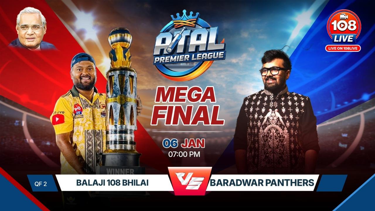 सक्ती। अटल प्रीमियर लीग (APL) का आज बहुप्रतीक्षित और रोमांच से भरपूर समापन होने जा रहा है। फाइनल मुकाबले में बालाजी 108 लाइव और बाराद्वार पैंथर्स आमने-सामने होंगी। दोनों ही टीमें पूरे टूर्नामेंट में बेहतरीन प्रदर्शन कर चुकी हैं, ऐसे में यह महामुकाबला कांटे का होने की पूरी संभावना है। क्रिकेट प्रेमियों के बीच यही सवाल गूंज रहा है—कौन मारेगा बाजी और किसके सिर सजेगा APL का खिताब?